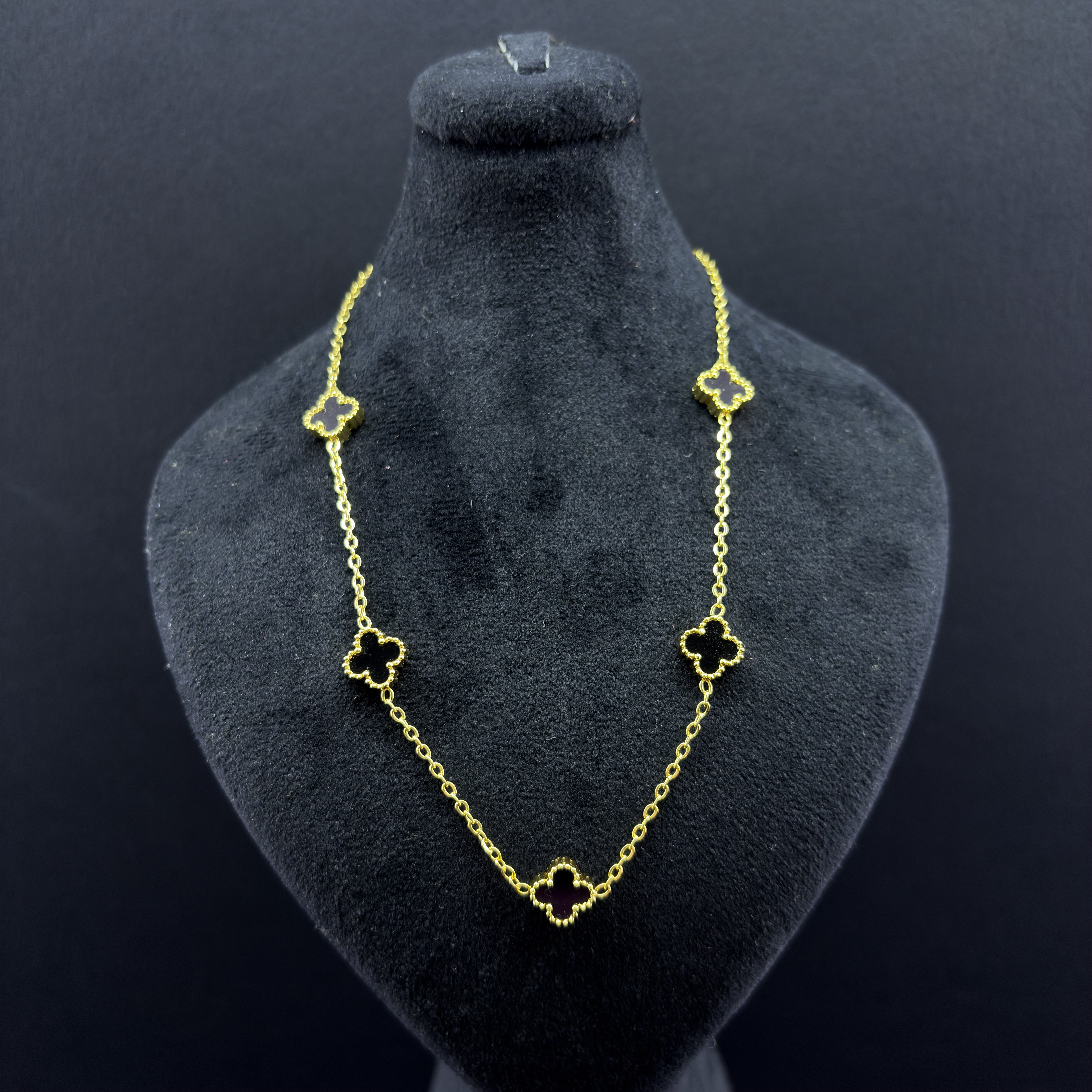 گردنبند ونکلیف طلایی مشکی گل ریز