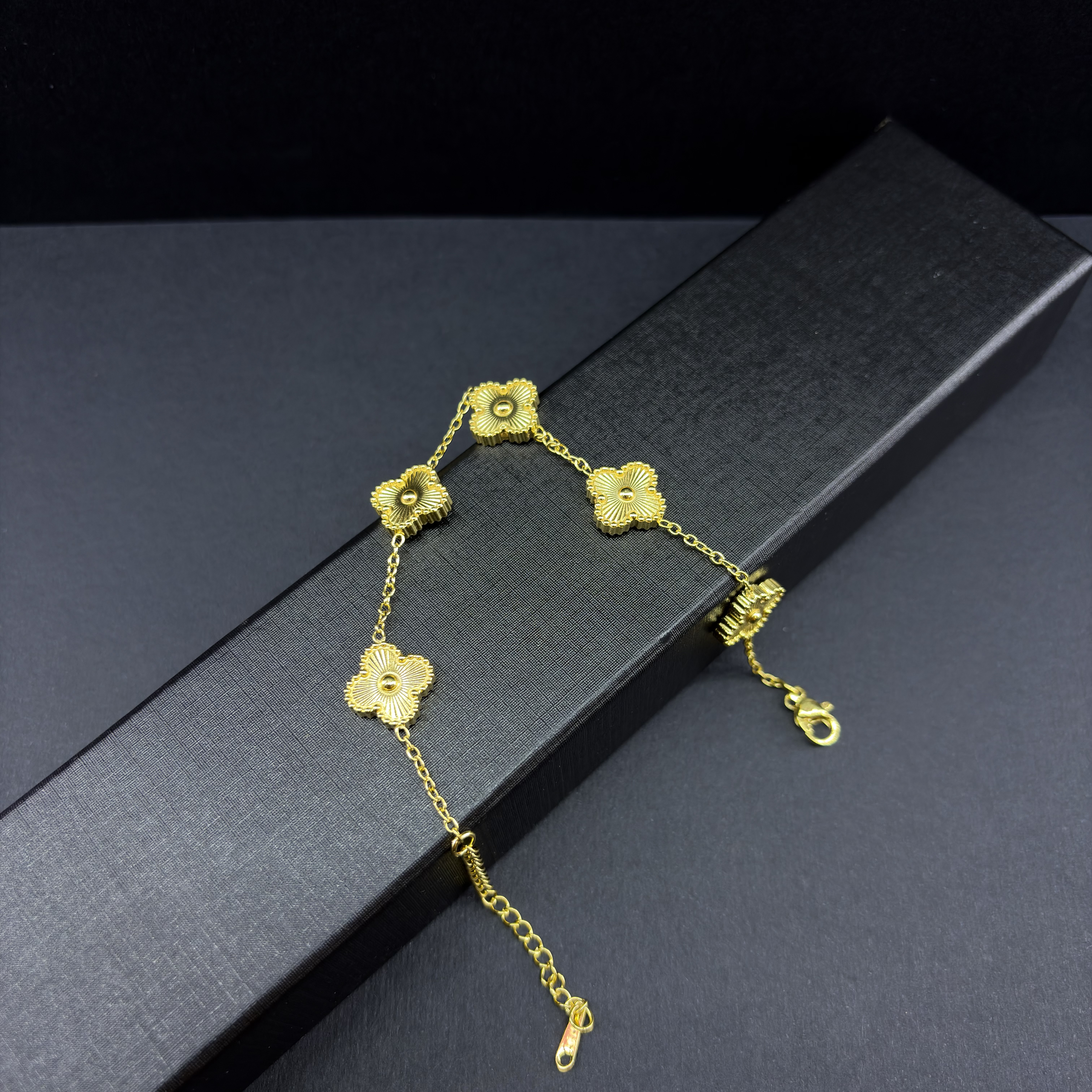 دستهبندی: دستبند زنجیریبرچسبها : ونکلیفدستبندطلایی با گل طلایی: ✅پنج گل: 5✅استیل رنگ ثابت ضد حساسیت: ✅قابلیت تغییر سایز: ✅