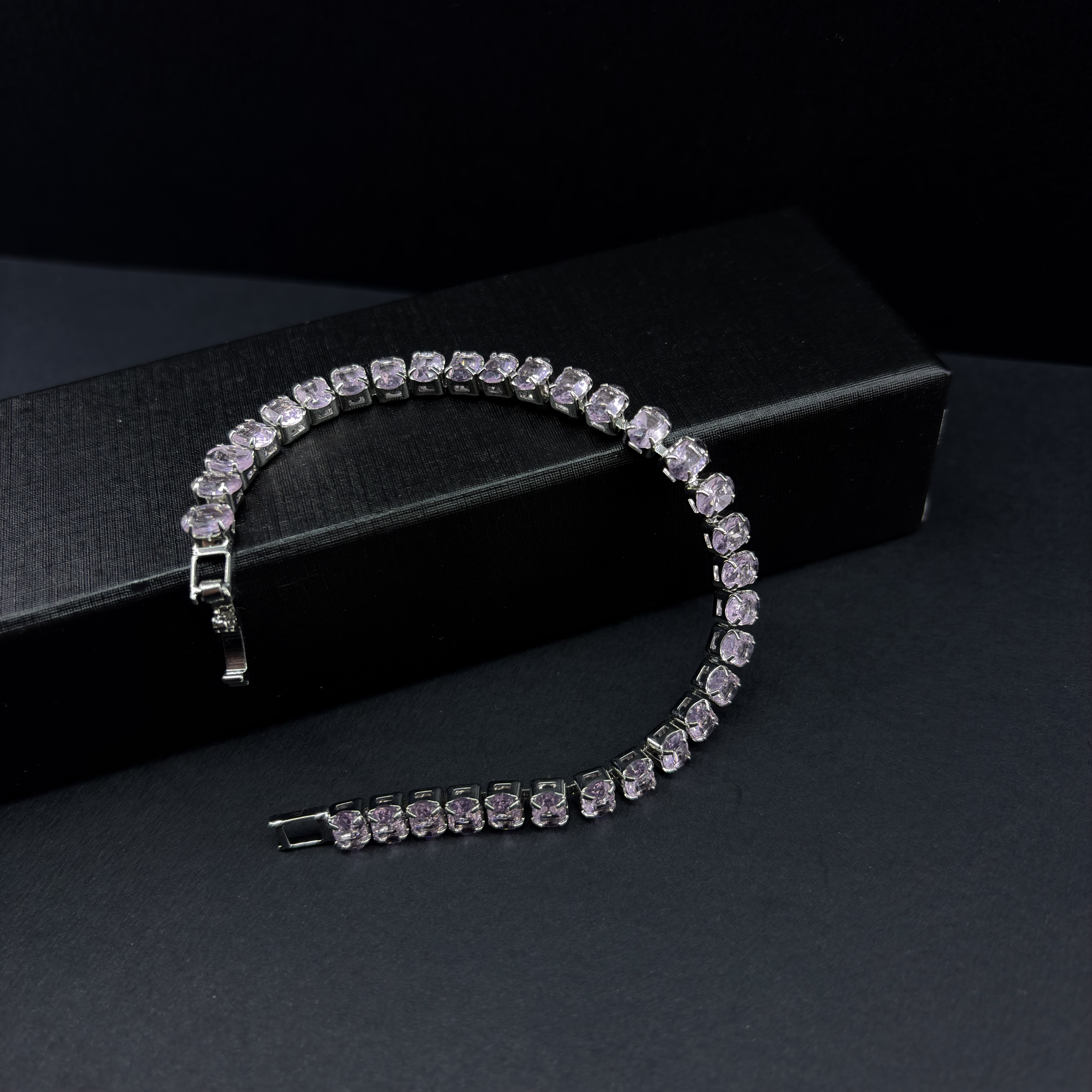دستبند تنیسی درشت رنگ نقره ای٫نگین های پرسی و دارای رکاب