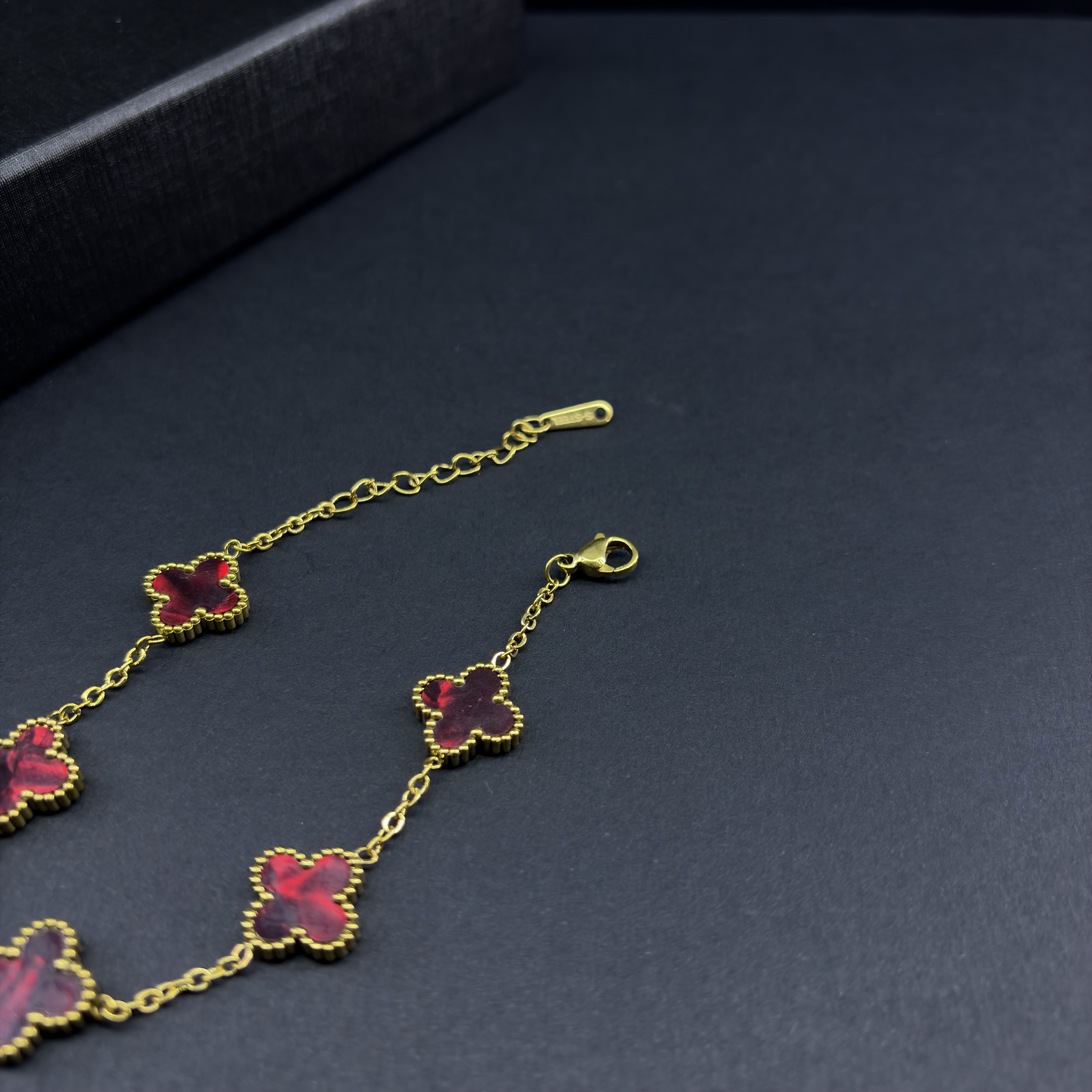 دستبند پنج گل ونکلیف طلایی با گل اتمی آبی کیفیت بالا رنگ ثابت ضد حساسیت از برند جدید و کیفیت بالای kasm
