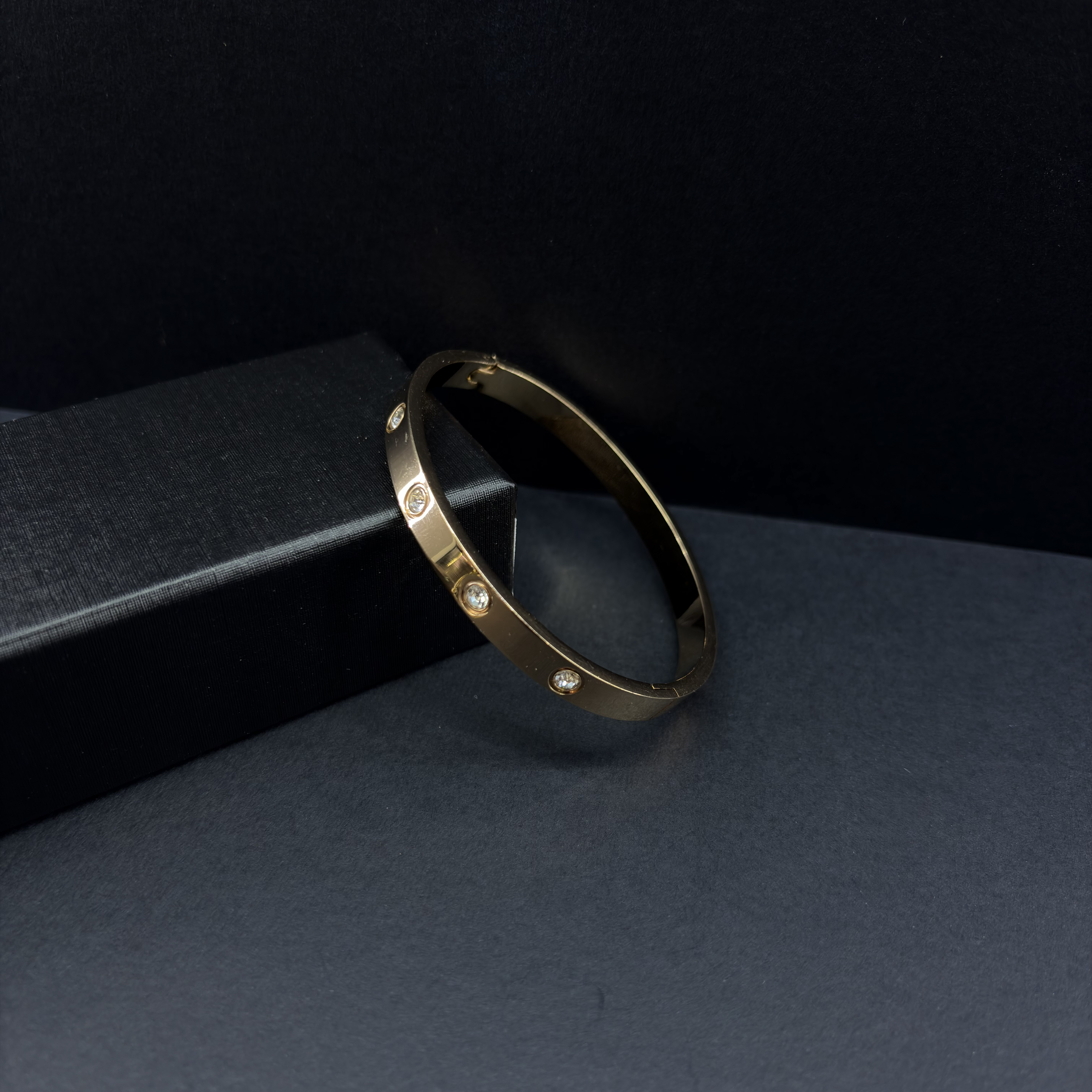 دستبند کارتیه مدل نگینی با نگین های اتمی پرسی سایز ۱۷ رنگ رزگلد استیل کیفیت A+