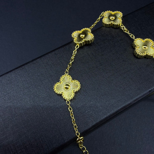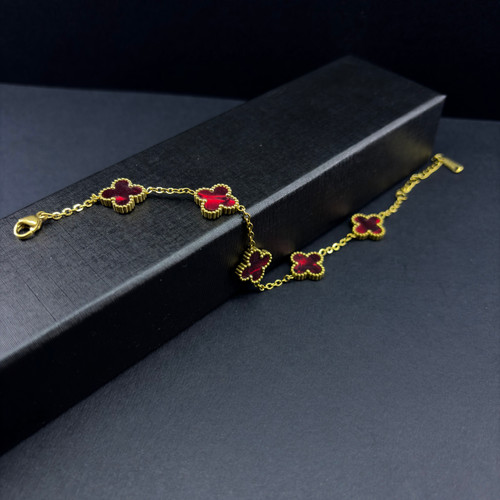 دستبند ونکلیف طلایی زرشکی گل درشت